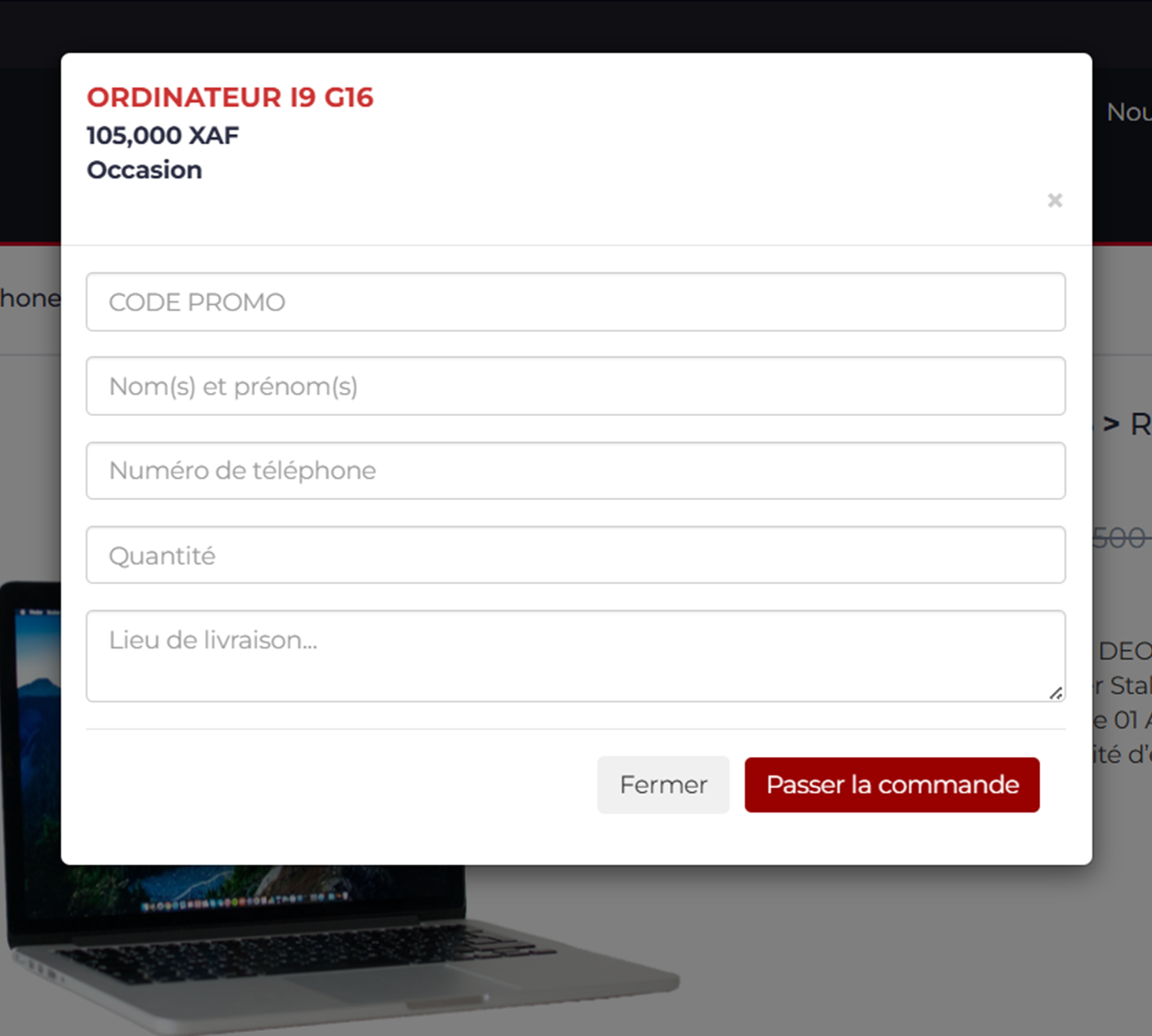 Une fois cliquer, vous trouvez la fenêtre où est écrit avec tous les détails du produit et passer votre commande